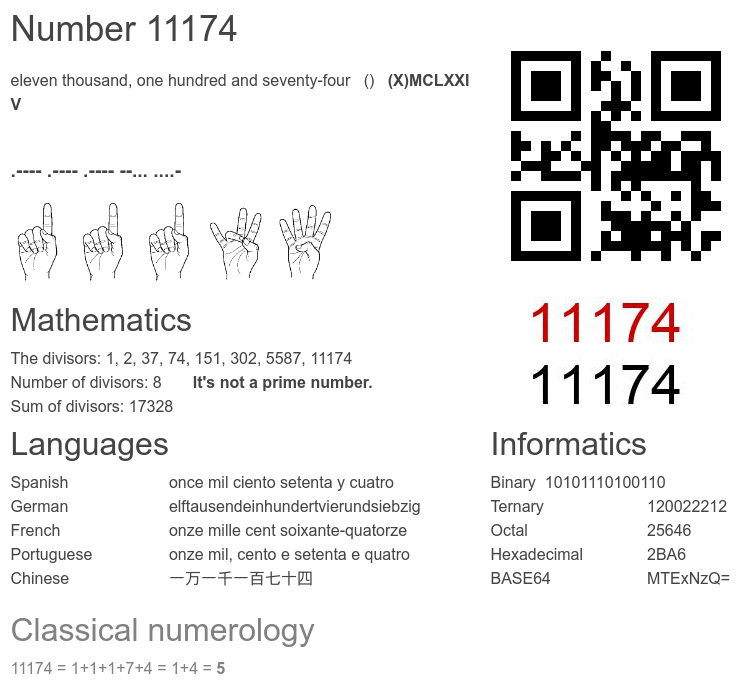 If you know something interesting about the 11174 number that you did not find on this page, do not hesitate to write us here.