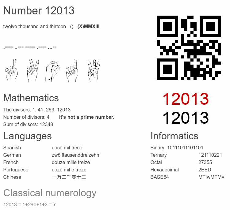 Number 12013 infographic