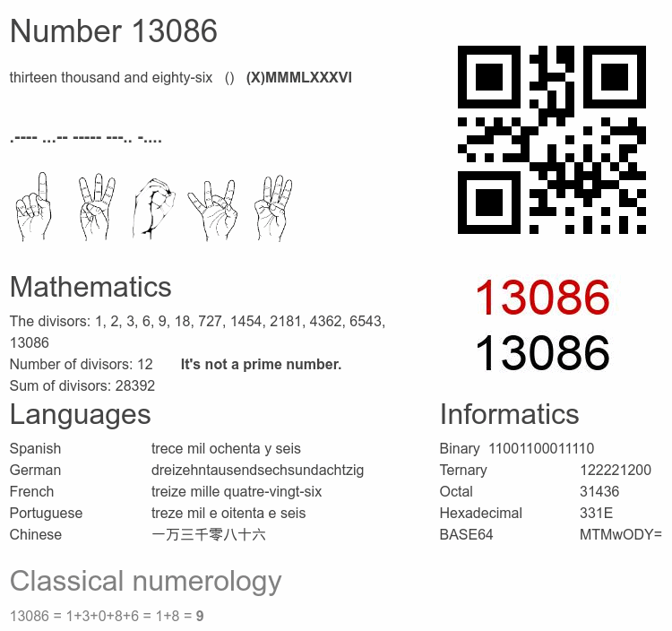 Number 13086 infographic