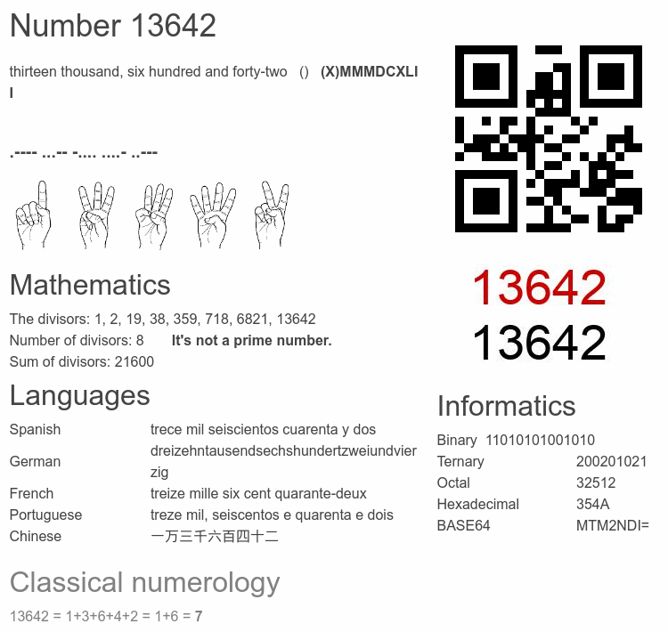 If you know something interesting about the 13642 number that you did not find on this page, do not hesitate to write us here.