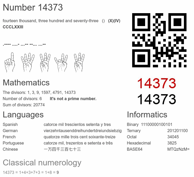 Number 14373 infographic