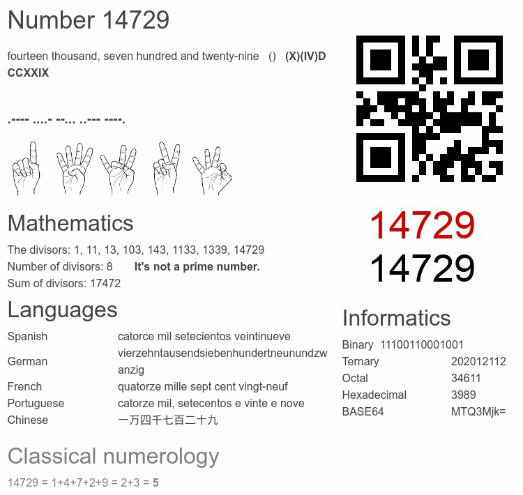 If you know something interesting about the 14729 number that you did not find on this page, do not hesitate to write us here.