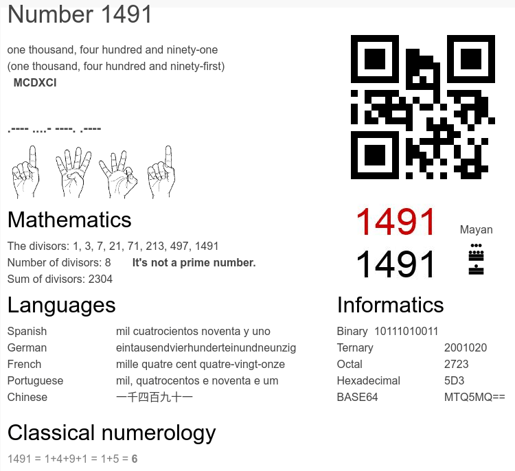 Frequently asked questions about the number 1491