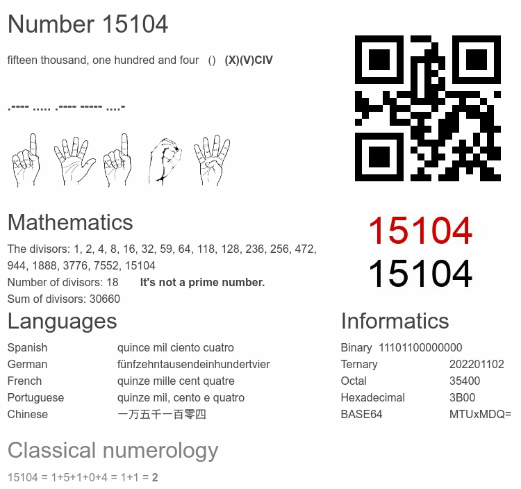 Number 15104 infographic