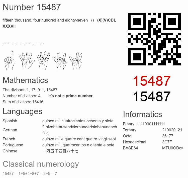 If you know something interesting about the 15487 number that you did not find on this page, do not hesitate to write us here.
