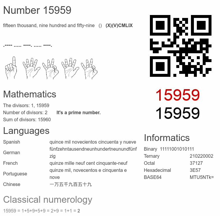 Number 15959 infographic