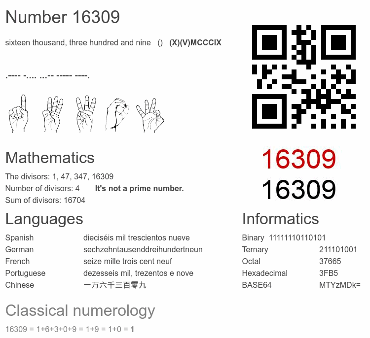 If you know something interesting about the 16309 number that you did not find on this page, do not hesitate to write us here.