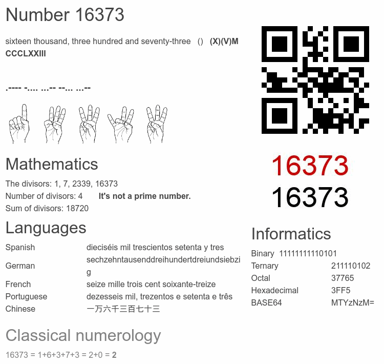 Number 16373 infographic
