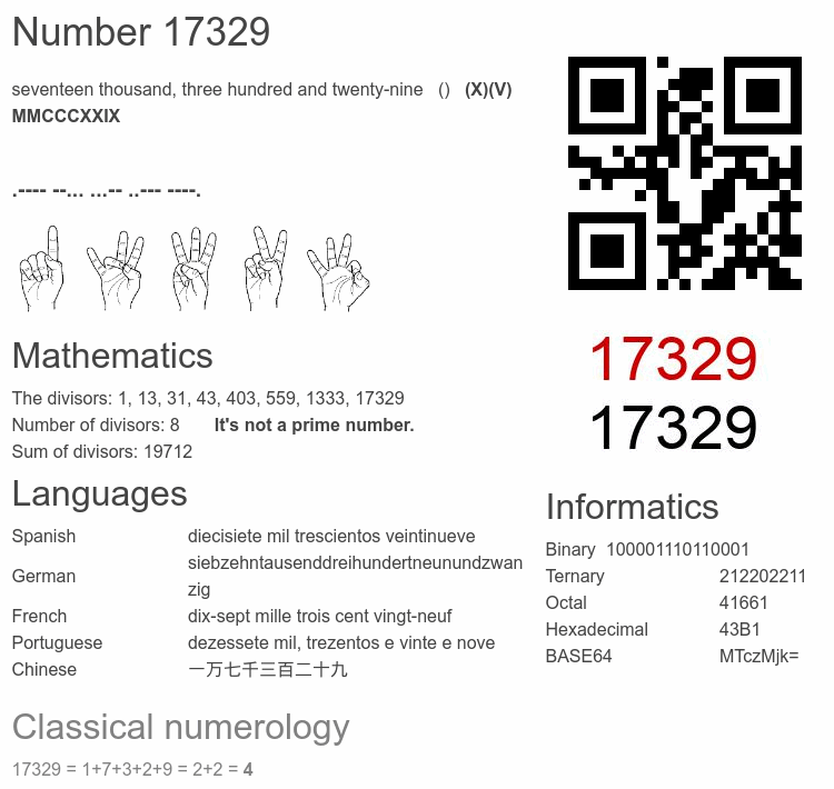 If you know something interesting about the 17329 number that you did not find on this page, do not hesitate to write us here.
