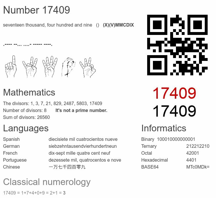 Number 17409 infographic