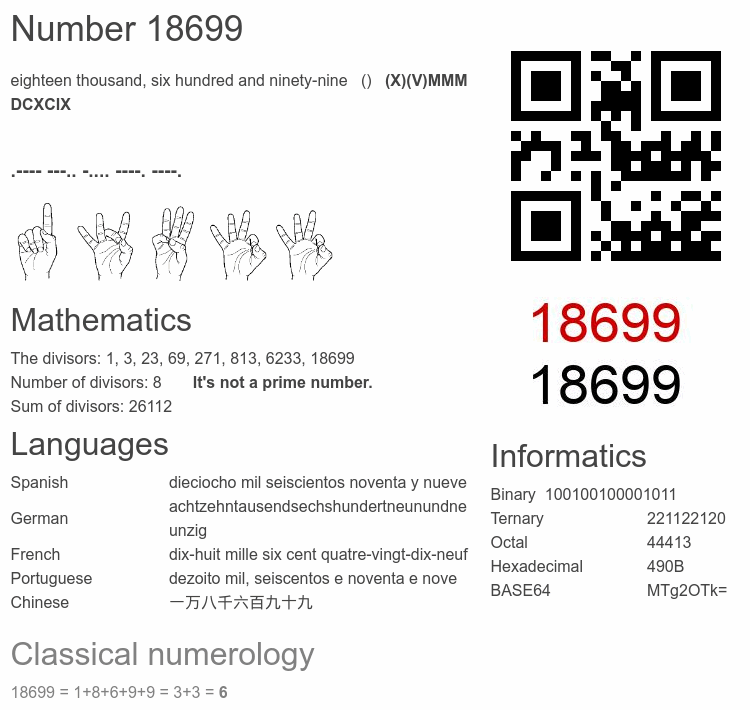 Number 18699 infographic