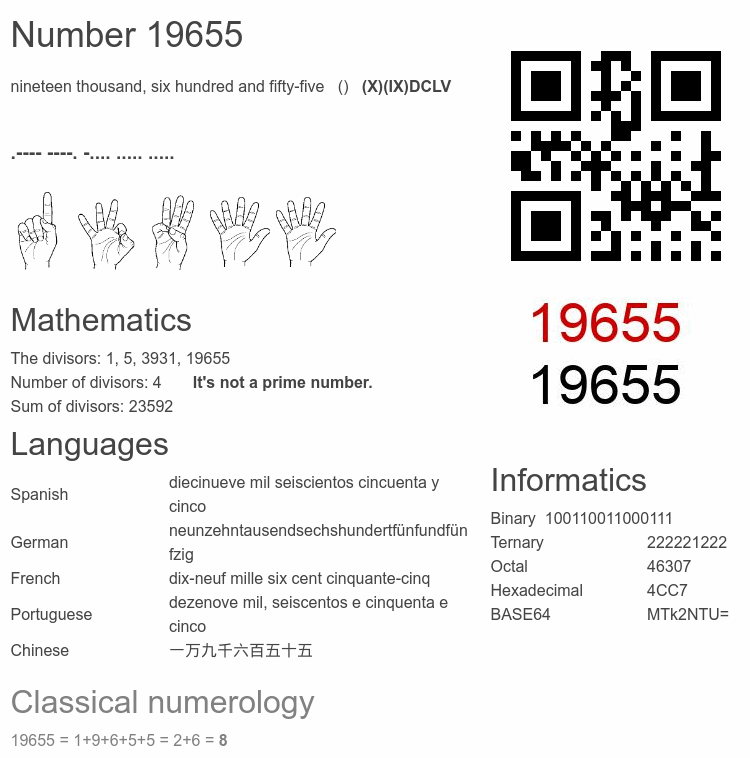 Number 19655 infographic