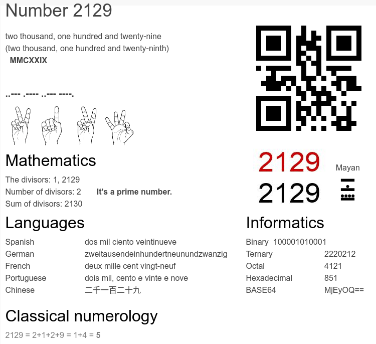 If you know something interesting about the 2129 number that you did not find on this page, do not hesitate to write us here.