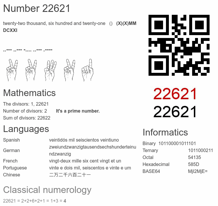 Number 22621 facts