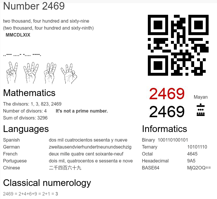 If you know something interesting about the 2469 number that you did not find on this page, do not hesitate to write us here.