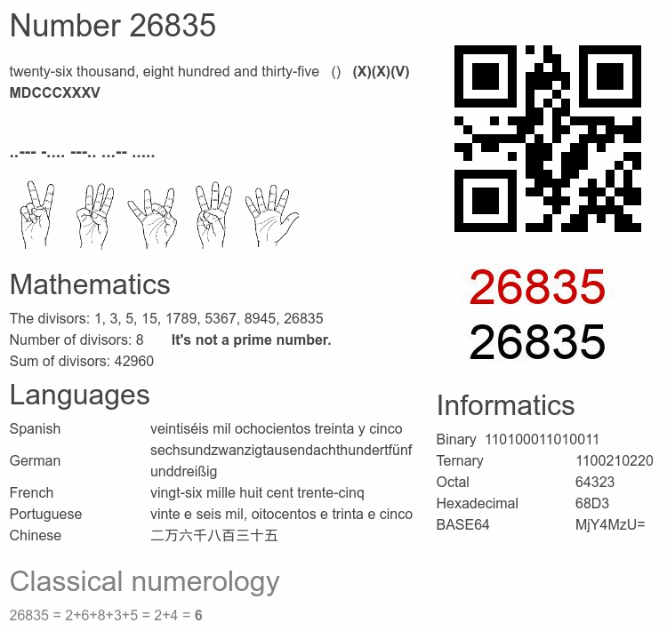 If you know something interesting about the 26835 number that you did not find on this page, do not hesitate to write us here.