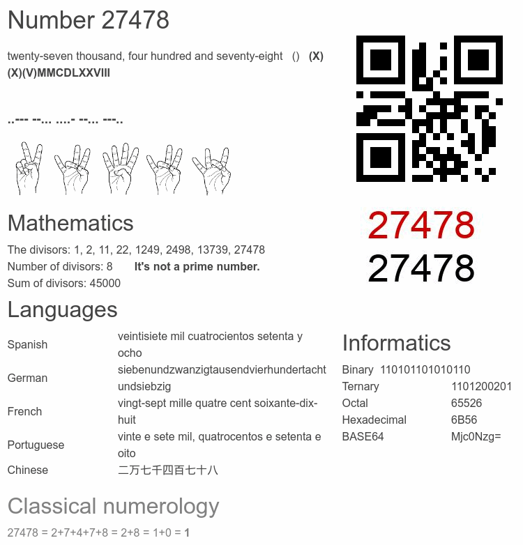 Number 27478 infographic