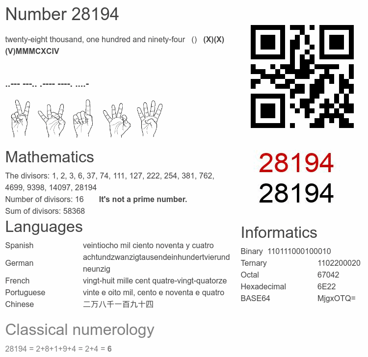 If you know something interesting about the 28194 number that you did not find on this page, do not hesitate to write us here.