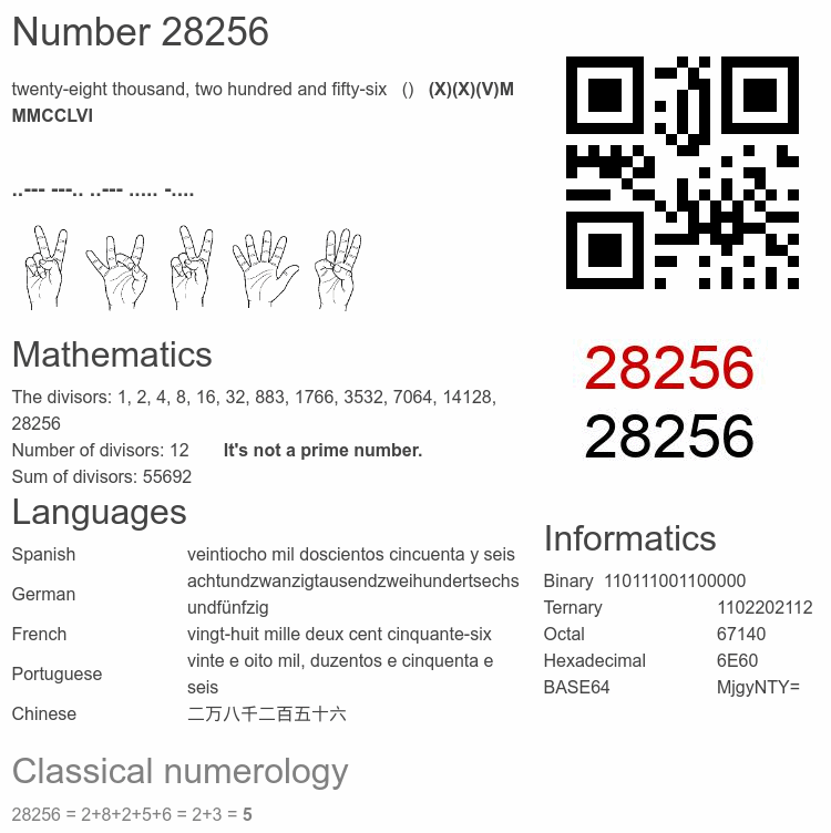 If you know something interesting about the 28256 number that you did not find on this page, do not hesitate to write us here.