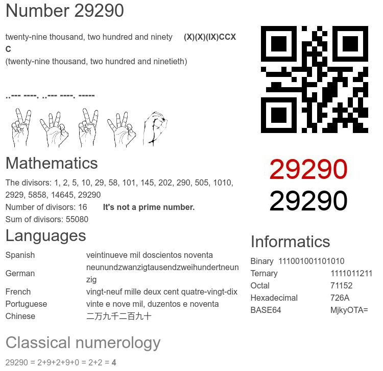 Frequently asked questions about the number 29290