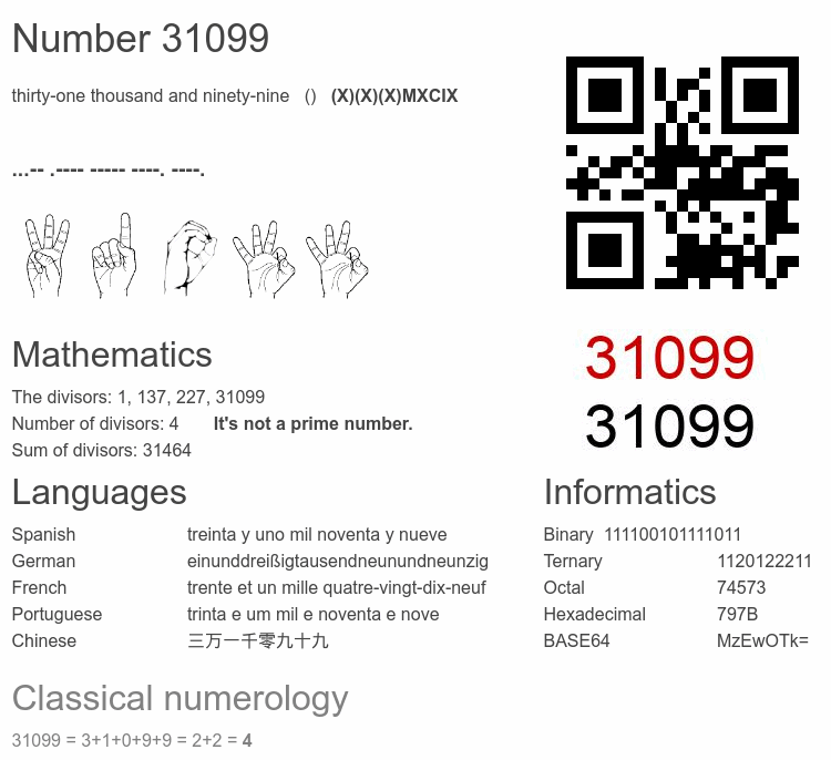 Number 31099 facts
