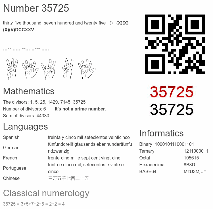 If you know something interesting about the 35725 number that you did not find on this page, do not hesitate to write us here.