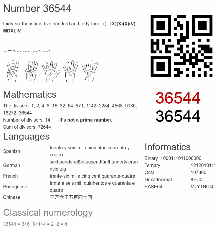 If you know something interesting about the 36544 number that you did not find on this page, do not hesitate to write us here.