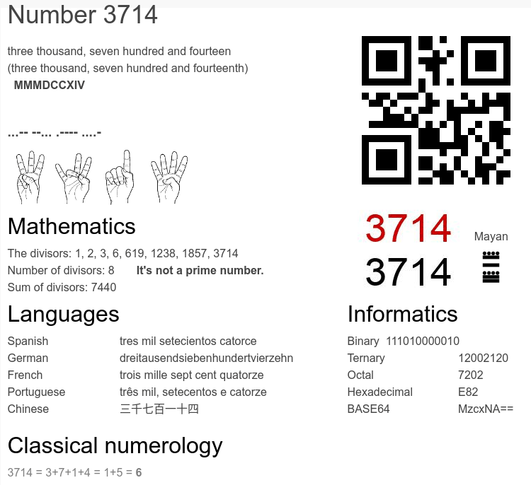 If you know something interesting about the 3714 number that you did not find on this page, do not hesitate to write us here.
