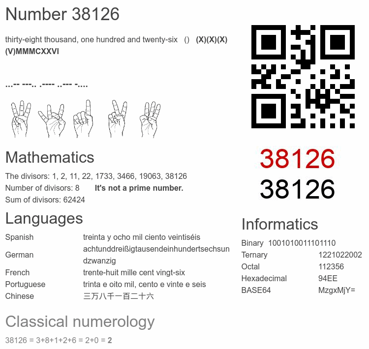 Interesting facts about the number 38126