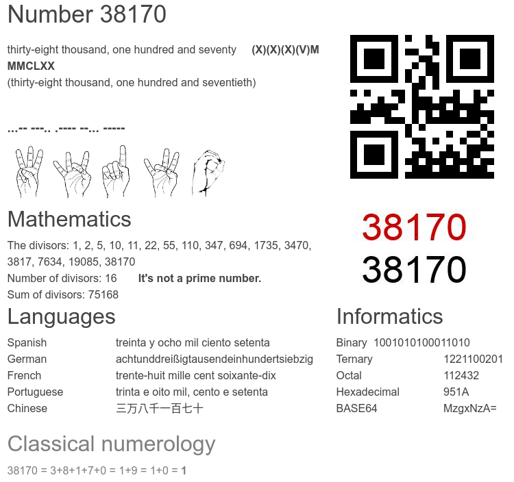 | Spanish: | 🔊 (número 38.170) | treinta y ocho mil ciento setenta |