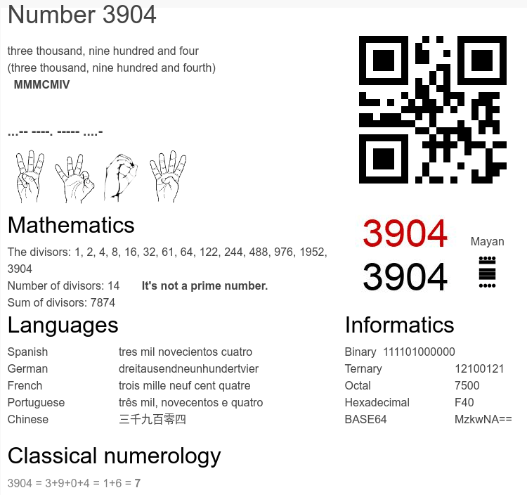 Frequently asked questions about the number 3904