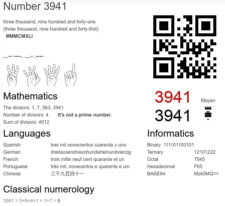 If you know something interesting about the 3941 number that you did not find on this page, do not hesitate to write us here.