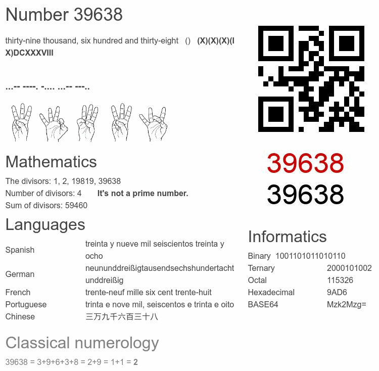 Interesting facts about the number 39638