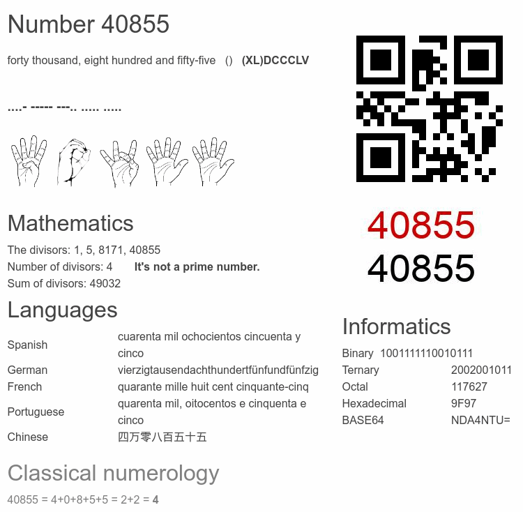 Number 40855 infographic