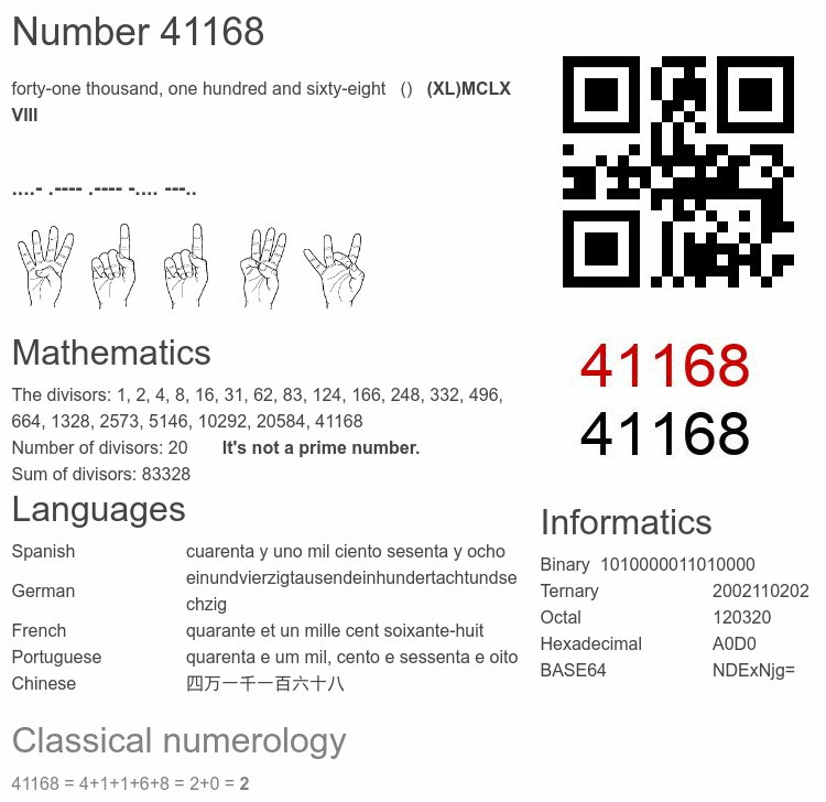 Interesting facts about the number 41168