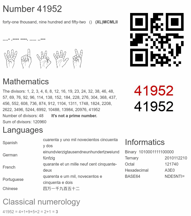 Interesting facts about the number 41952