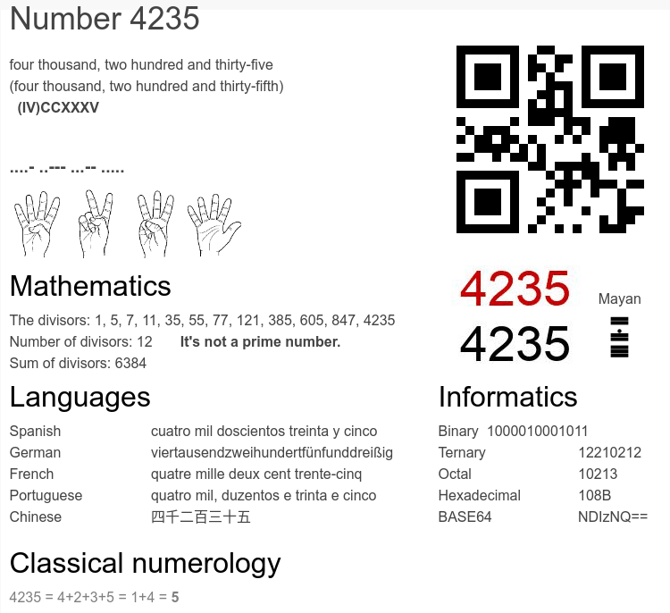 If you know something interesting about the 4235 number that you did not find on this page, do not hesitate to write us here.