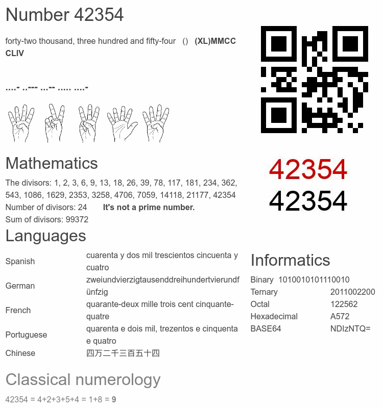 Frequently asked questions about the number 42354