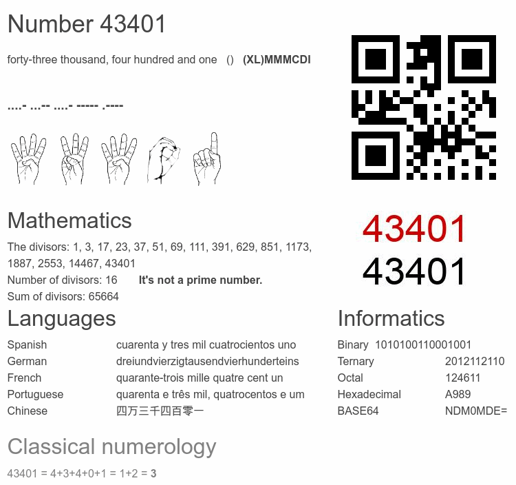 Number 43401 infographic