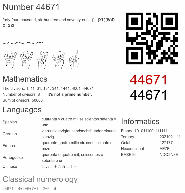 Interesting facts about the number 44671