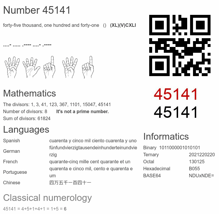 Interesting facts about the number 45141