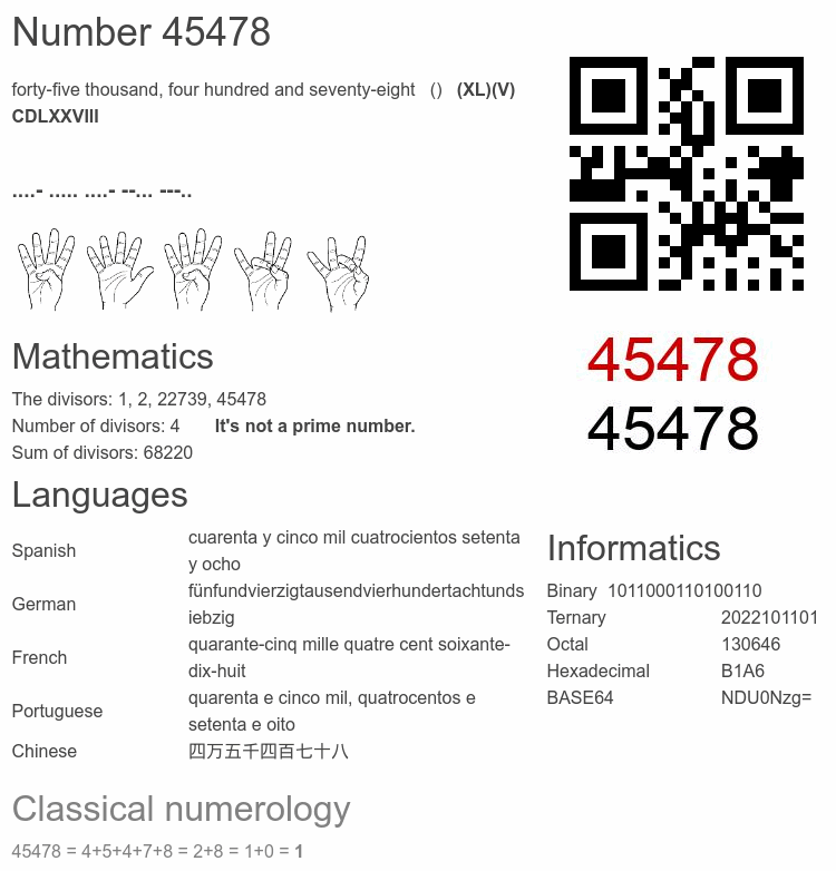 Number 45478 facts