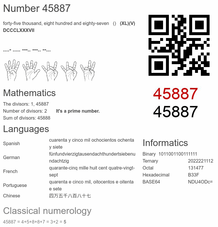 Number 45887 facts