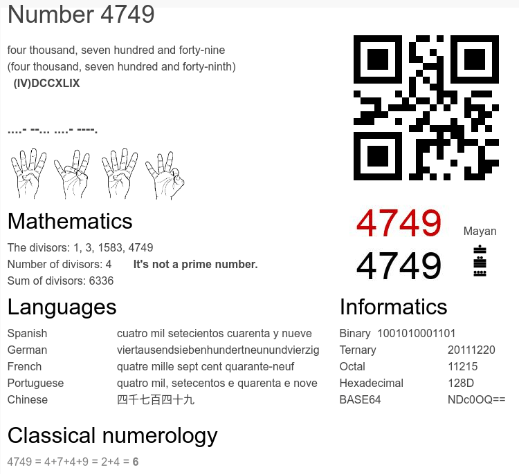 If you know something interesting about the 4749 number that you did not find on this page, do not hesitate to write us here.