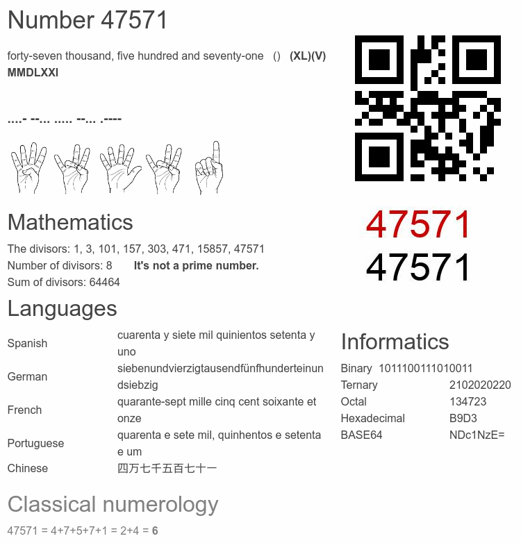 Interesting facts about the number 47571