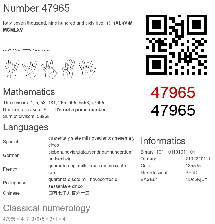 Interesting facts about the number 47965
