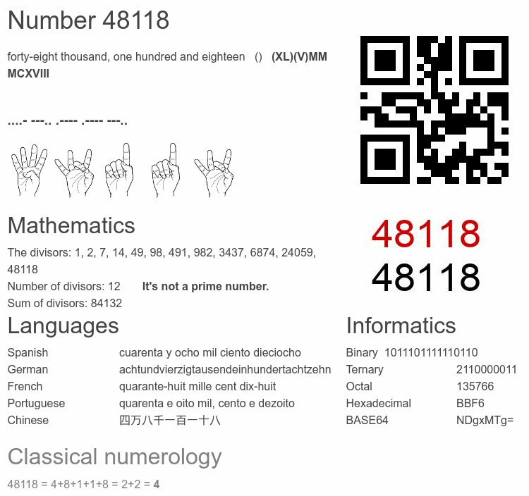 Number 48118 infographic