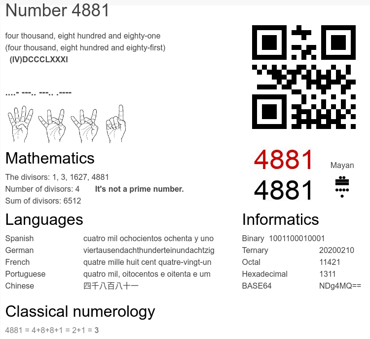 Number 4881 infographic
