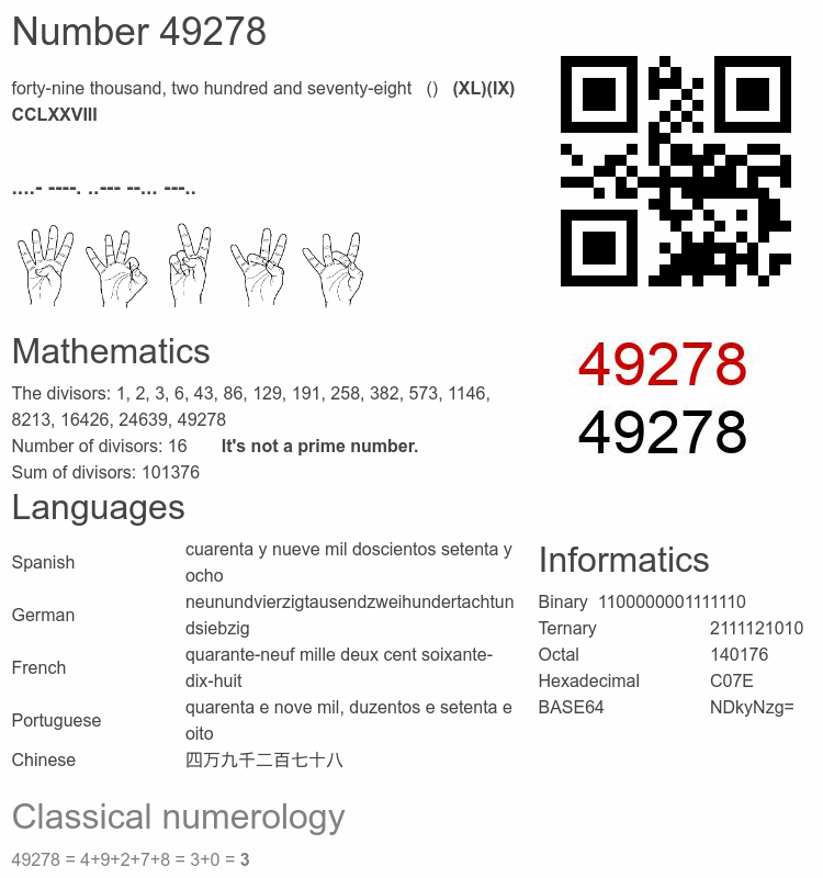 Interesting facts about the number 49278