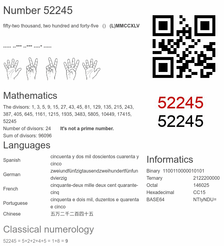 If you know something interesting about the 52245 number that you did not find on this page, do not hesitate to write us here.